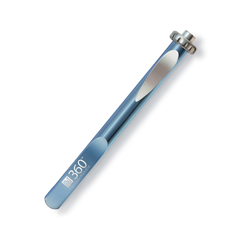 The MST 360° titanium handle is a universal handle compatible with all MST instruments. It allows rotation of the instrument head without changing hand positioning, supporting optimal access and control in the anterior chamber.